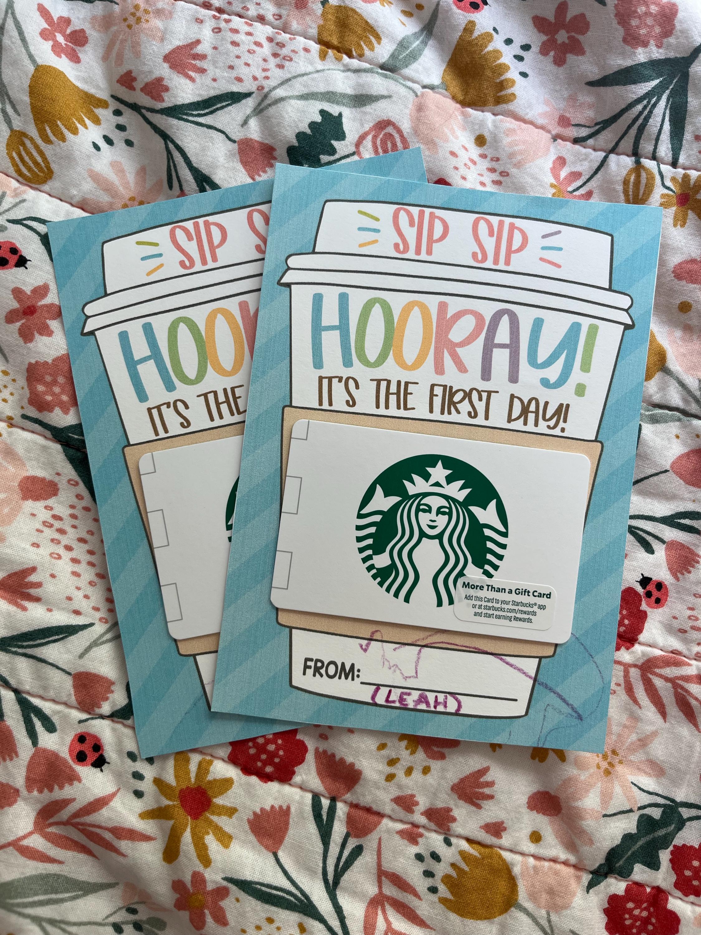 Sip Sip Hooray It's the First Day - Back to School Coffee Gift Card Holder for Teacher, Printable First Day of School Teacher Card