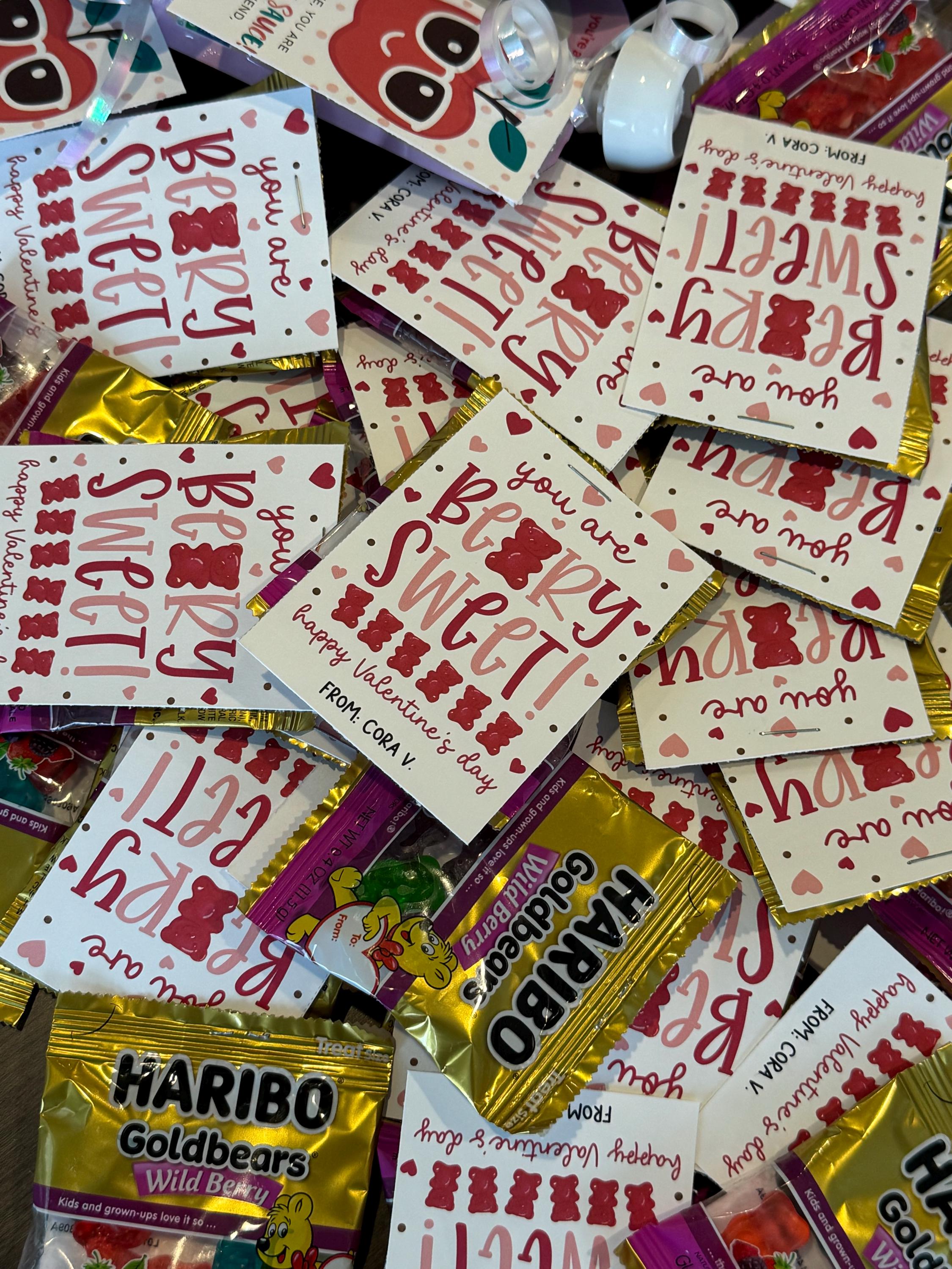 Sweeten your classroom gifting with this beary sweet Valentine gift tag printable that features the punny message, “you are BEARY SWEET!” and “Happy Valentine’s Day!”, perfect for printing, cutting, and tying to gummy bear bags, candy cups, or small gifts for classmates, friends, neighbors, and school Valentine parties.