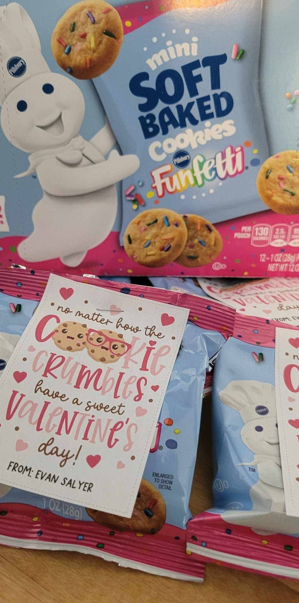 Make Valentine gifting extra sweet with this cookie Valentine gift tag printable that features the punny message, “No matter how the cookie crumbles, have a sweet Valentine’s Day!”, perfect for printing, cutting, and clipping to kraft favor bags or cookie treats for classmates, friends, and school Valentine parties.