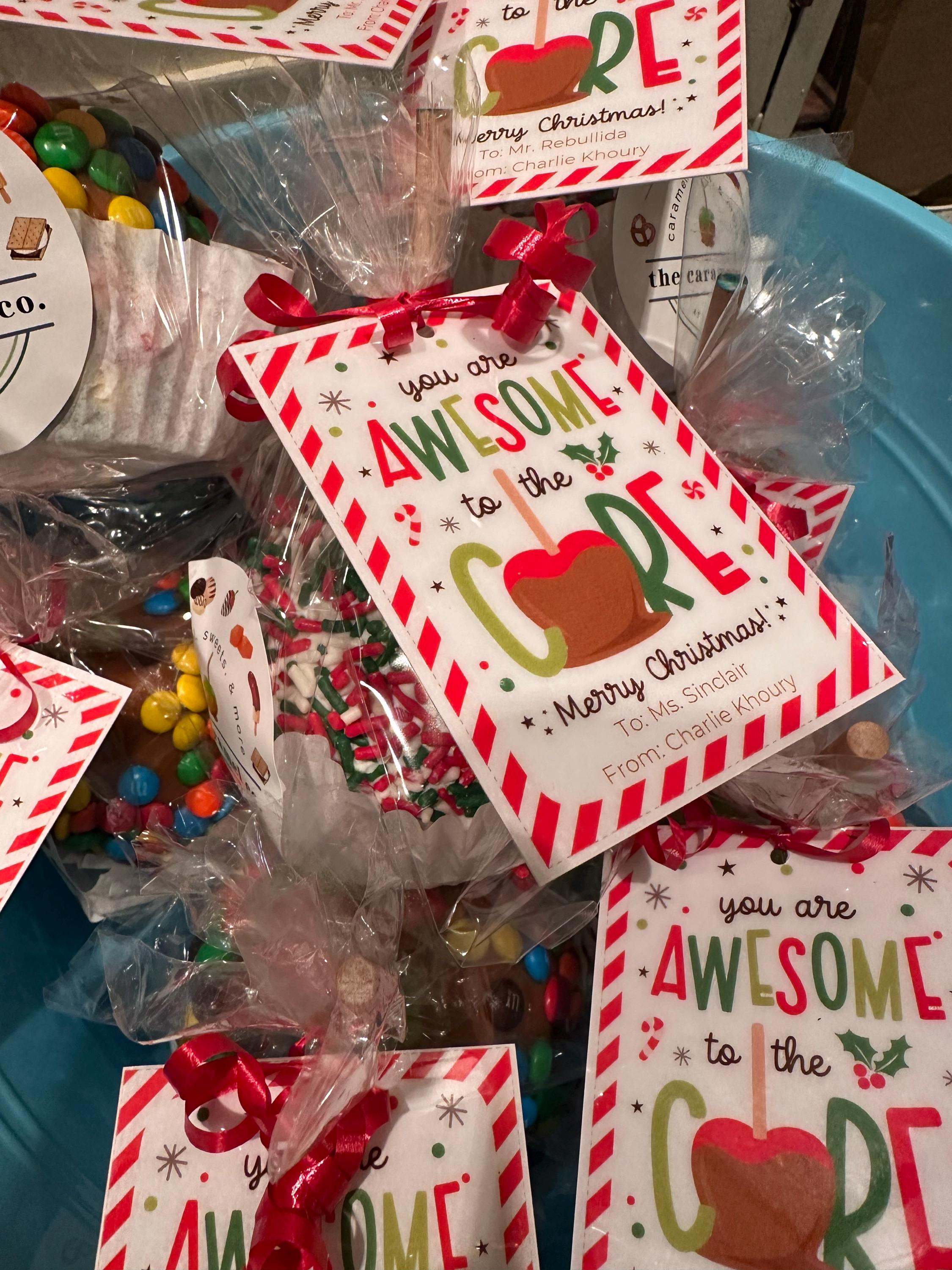 Say thanks in the sweetest way with this Christmas gift tag printable that reads, “You are AWESOME to the CORE — Merry Christmas!” Perfect for caramel apples, cookie boxes, and gift cards — a thoughtful teacher appreciation, coworker holiday gift, and neighbor treat label.