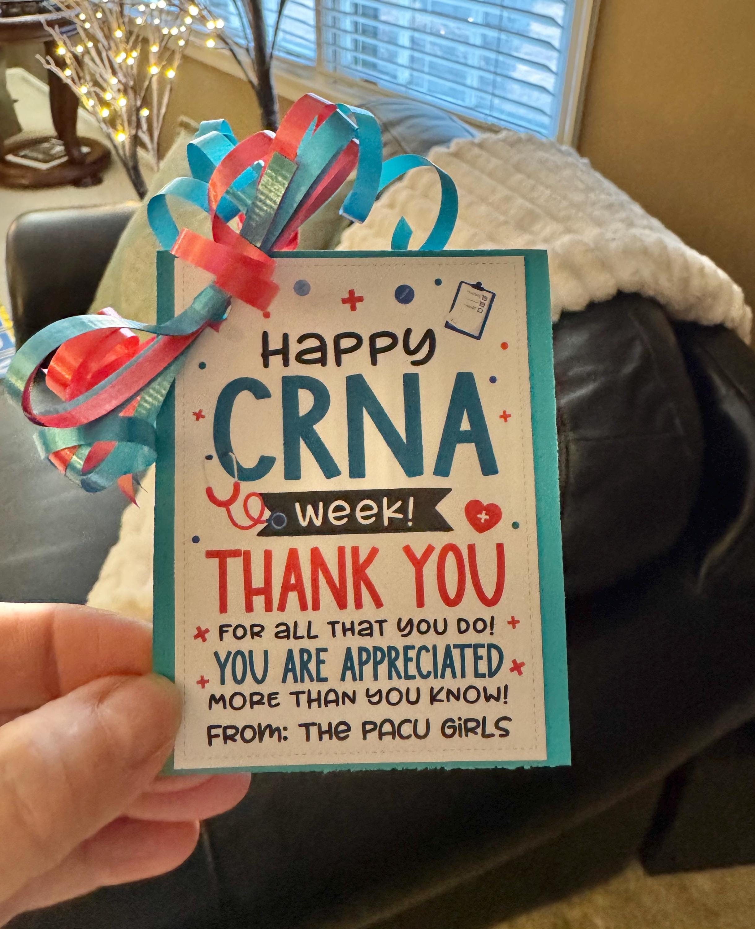 Printable CRNA Week Gift Tags, Certified Registered Nurse Anesthetist Appreciation Gift Tags, CRNA Thank You Favor Tags, CRNA Cookie Tags