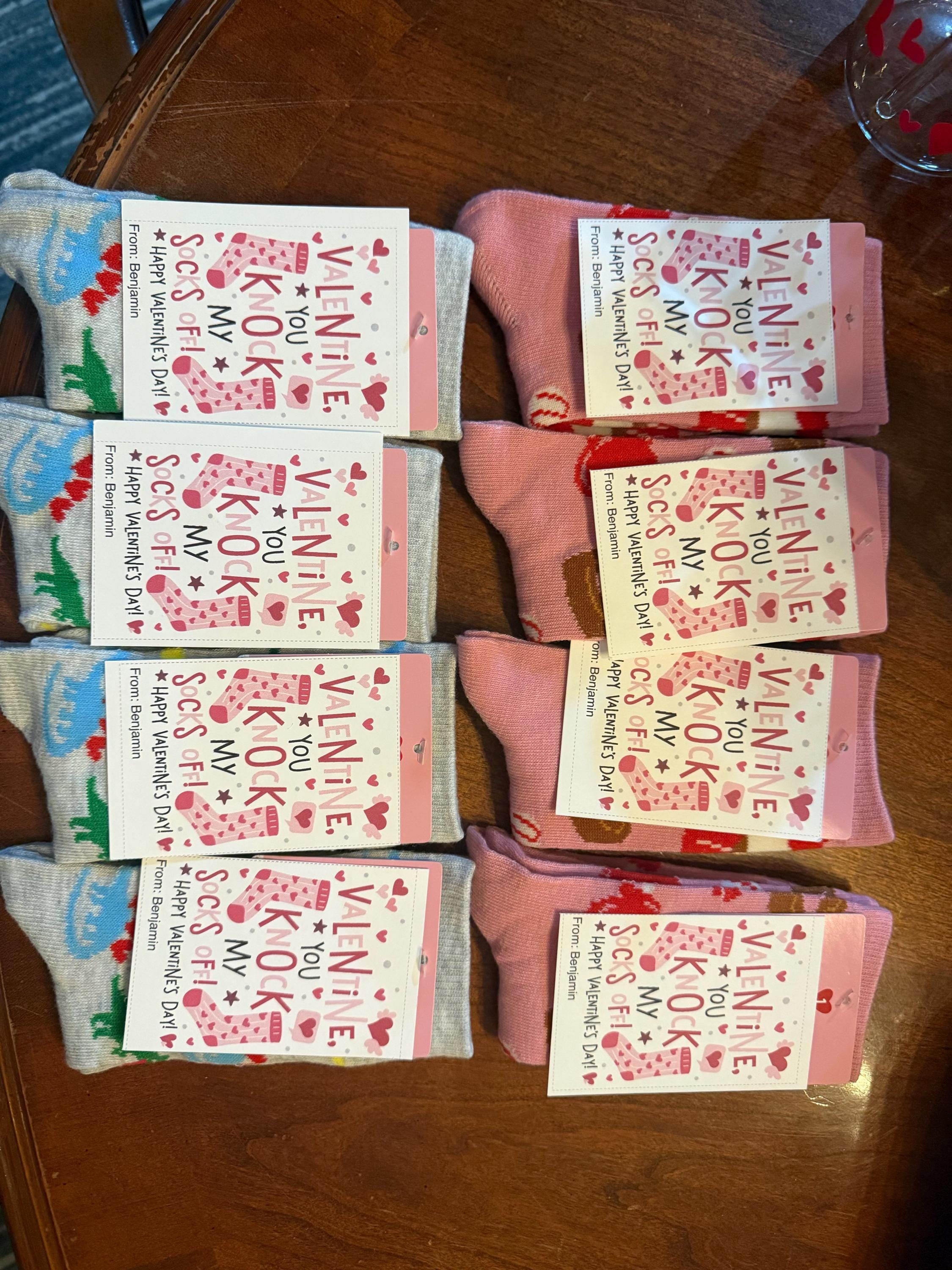 Warm up their holiday with this funny sock valentine gift tag printable, featuring a cute "Knock My Socks Off" pun that pairs perfectly with fuzzy socks, slippers, or novelty hosiery. It is a cozy and creative non-candy idea for teachers to give students, or for friends and neighbors to exchange during the chilly winter season.